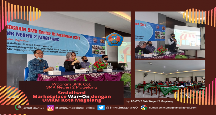 MAGELANG - SMK Negeri 2 adakan sosialisasi dan penandatanganan MoU Marketplace karya siswa SMK Waroeng Online (War~On) dengan UMKM kota Magelang (10/12).